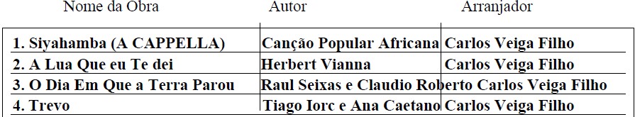 diversos corais capixabas, como o da UFES, Coro de Camara de Vitória, SEBRAE e